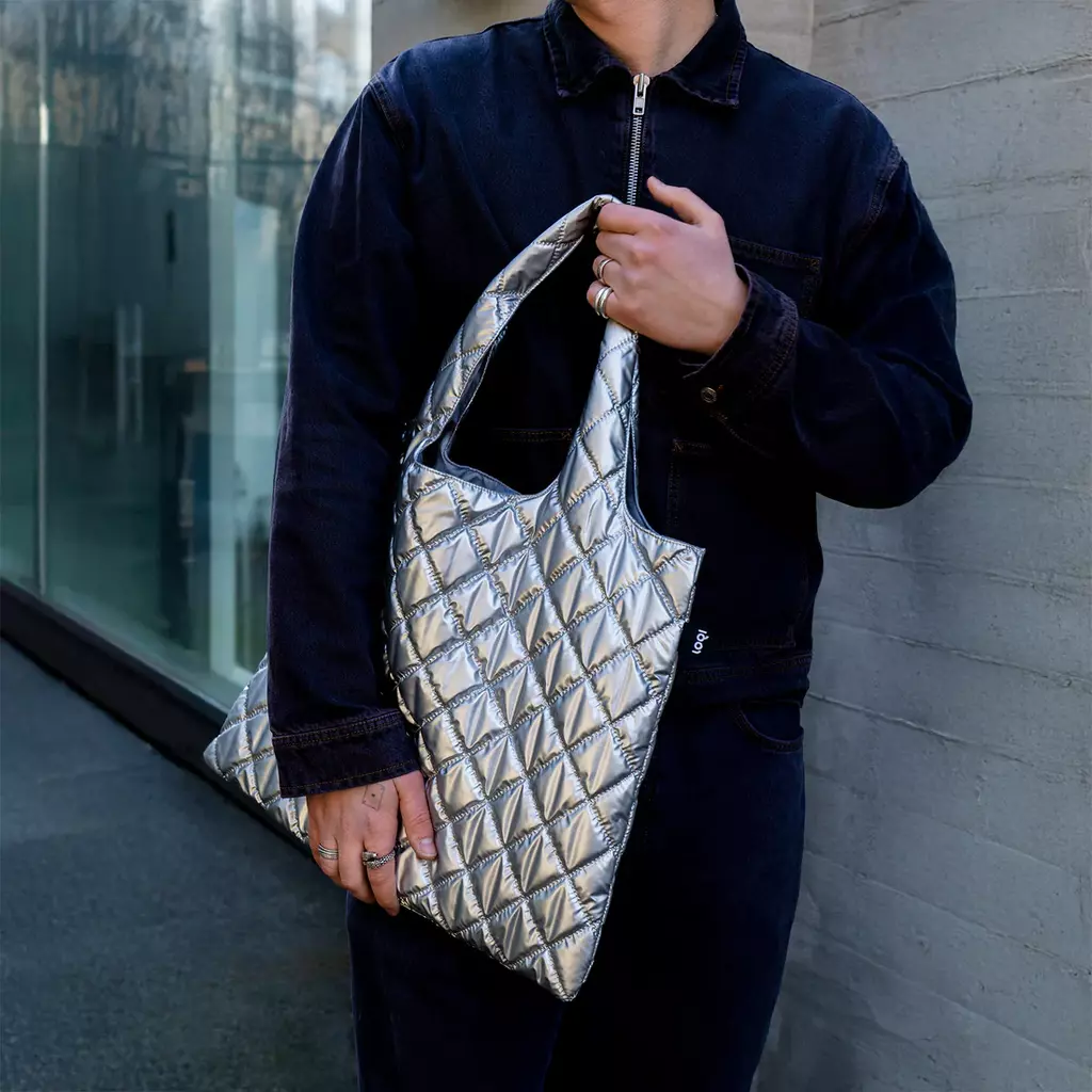 Zahlarten & VersandDer METALLIC PUFFY BAG vereint auffälligen Metallic-Look mit hipper Stepptechnik und überraschender Leichtigkeit. Die kompakte, weich gesteppte Tasche bietet ausreichend Raum für Notebook, Notizen oder Alltagsbegleiter und setzt durch ihr glänzendes silbernes Finish elegante Akzente im Business-Alltag. Das robuste Design trägt bis zu 15 kg und bleibt gleichzeitig ultraleicht.