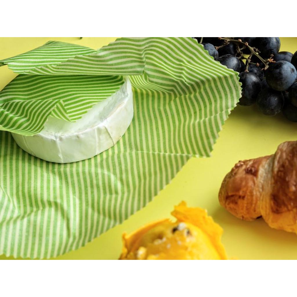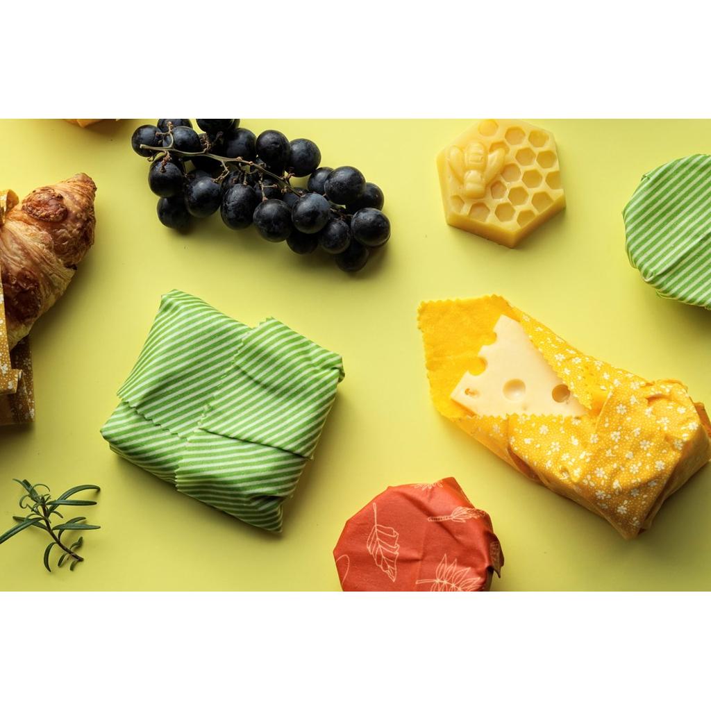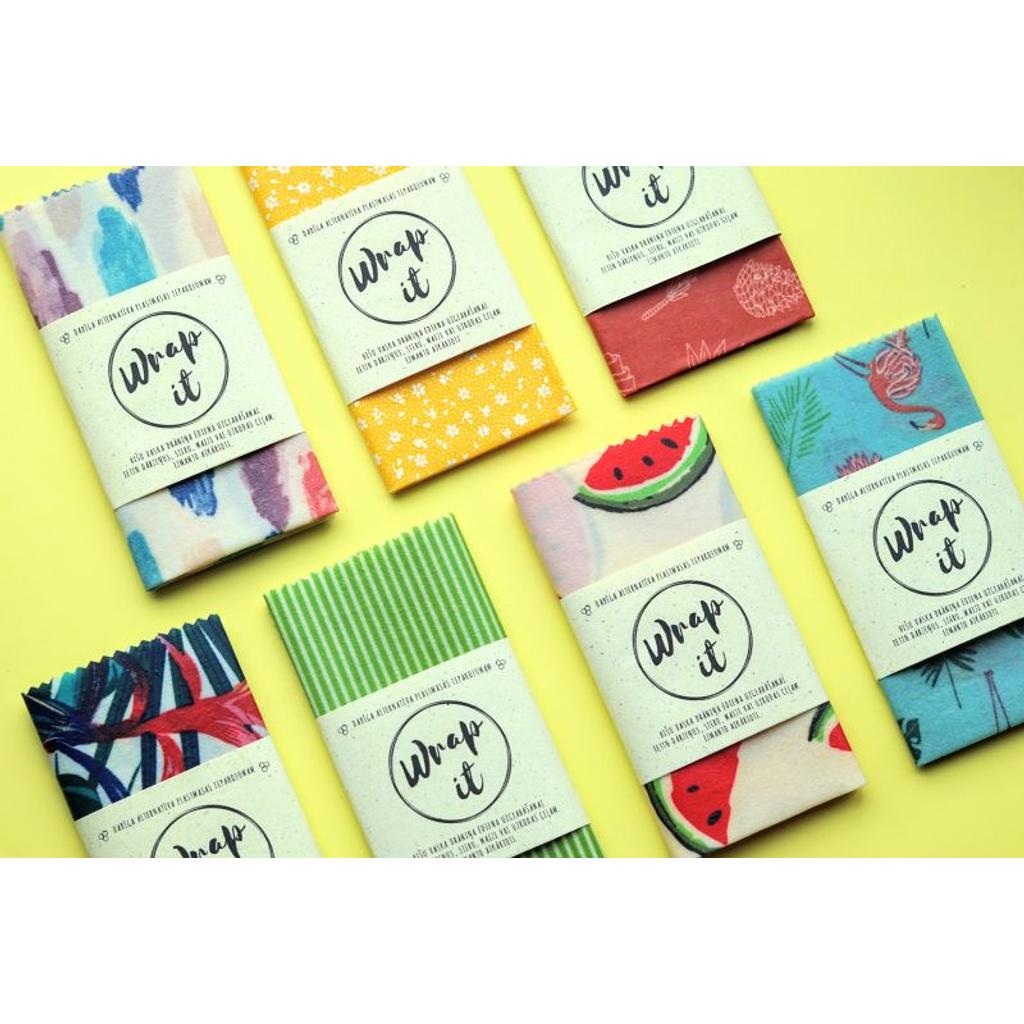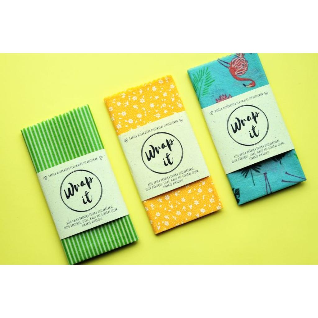 Die Bienenwachstücher Wrap It sind eine wiederverwendbare Alternative zur Plastikfolie und eignen sich für die Lagerung frischer Lebensmittel wie Obst, Gemüse und Brot sowie zum Abdecken von Schüsseln und mehr. Die Bienenwachstücher werden in Lettland aus lokalem Bienenwachs, Bio-Kokosöl und Oeko-Tex-zertifizierten Baumwollstoffen handgefertigt. Für die Verpackungen werden ausschließlich Recyclingpapier, Pappe und Karton verwendet. Da die Bienenwachswickel handgefertigt sind können sie sich in Details, Größe und Form geringfügig unterscheiden.