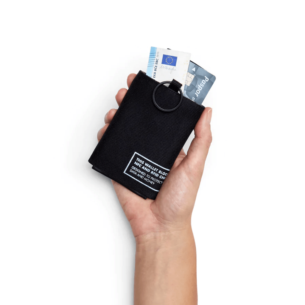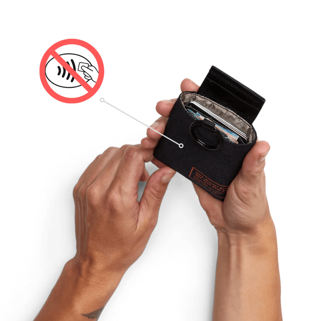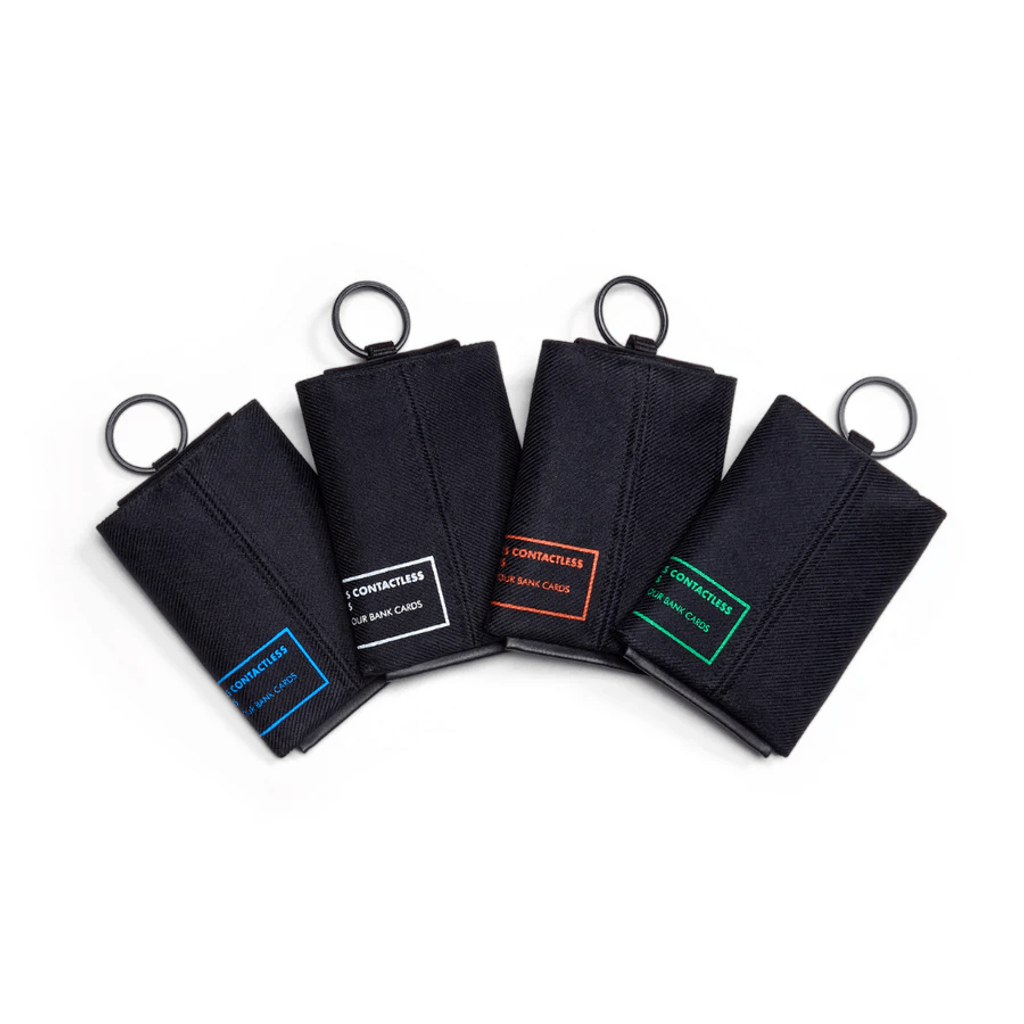 Der Geldbeutel NO-SIGNAL ist mit einem Klettverschluss ausgestattet und beinhaltet drei sichere und multifunktionale Fächer für Karten oder (Münz-)Geld in einem kompakten Design. Damit sieht der Geldbeutel nicht nur gut aus, sondern ist auch ein hilfreiches Gadget: Er verhindert, dass sich NFC-/RFID-Karten mit dem Terminal verbinden. Das Schutzmaterial ist ein in Deutschland hergestelltes Silbergewebe, das normalerweise zum Schutz von Astronauten vor kosmischer Strahlung verwendet wird.