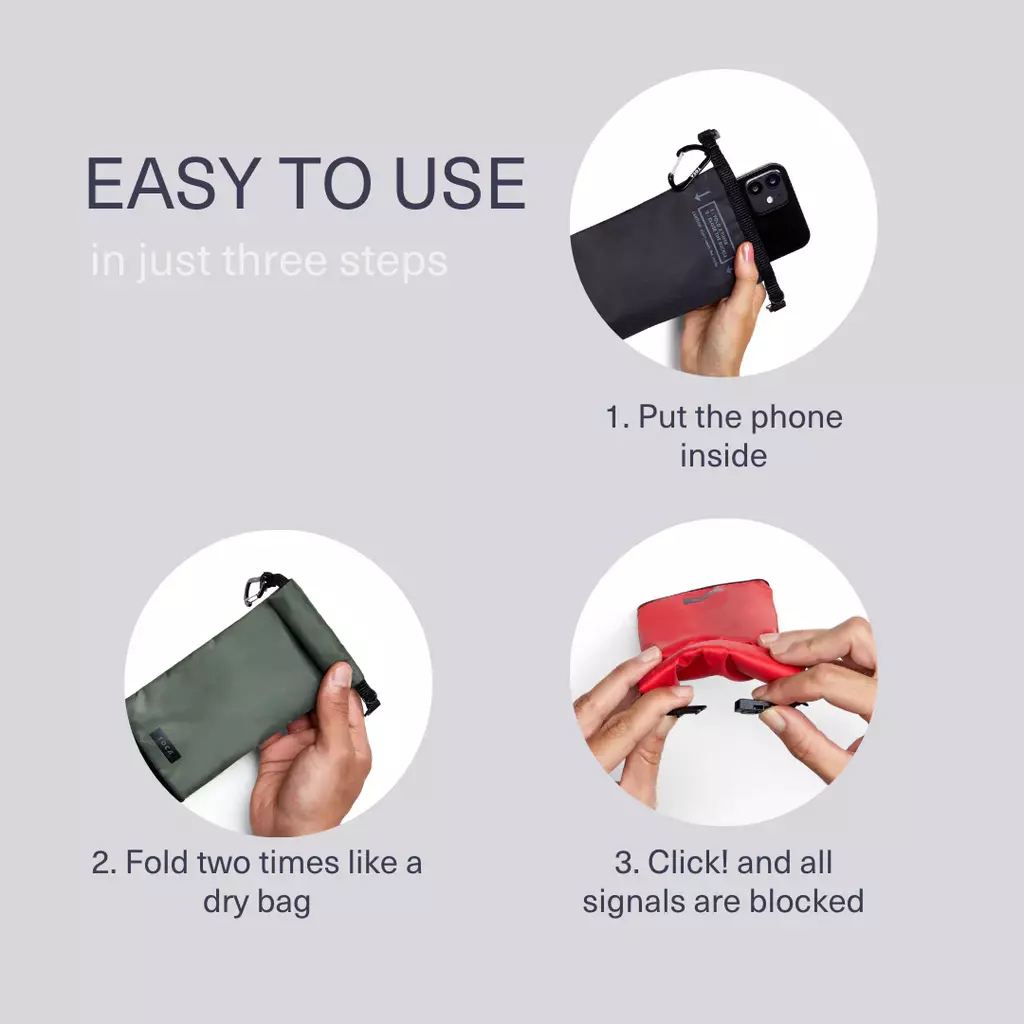 Die Handyhülle NO-SIGNAL aus recyceltem Fallschirmmaterial blockiert alle Smartphone-Signale (GPS, Wi-Fi, 3G, 4G, 5G, NFC ) und lässt durch das in Deutschland gefertigte, mit Silber beschichtete leitfähige Innenmaterial keine Signale nach außen dringen. So ist der Körper vor schädlicher Strahlung 100% geschützt. Sobald die Hülle abgenommen wird, werden alle Nachrichten wieder empfangen. Die Handyhülle wird im sonnigen Bali unter fairen Bedingungen gefertigt.