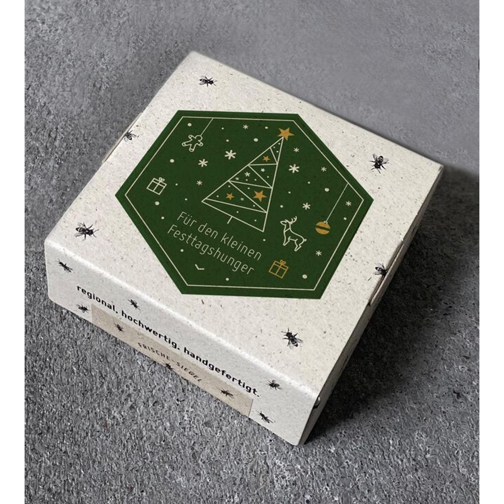 Die Füllung der Praline besteht aus cremigem, leicht herbem Lindenblütenhonig angereichert je nach Sorte mit natürlichem Minzöl, Zimt, Kaffeepulver, Zitrone oder Haselnussmark. Die Pralinen entstehen in einer regionalen Pralinenmanufaktur in regionaler Handarbeit und werden plastikfrei in nachhaltiger Verpackung inkl. Etikett aus Graspapier, geliefert. Die Weihnachtsvariante ist perfekt, um Ihren Kunden, Mitarbeitern oder Geschäftspartnern festliche Grüße in der besinnlichen Zeit auszurichten.