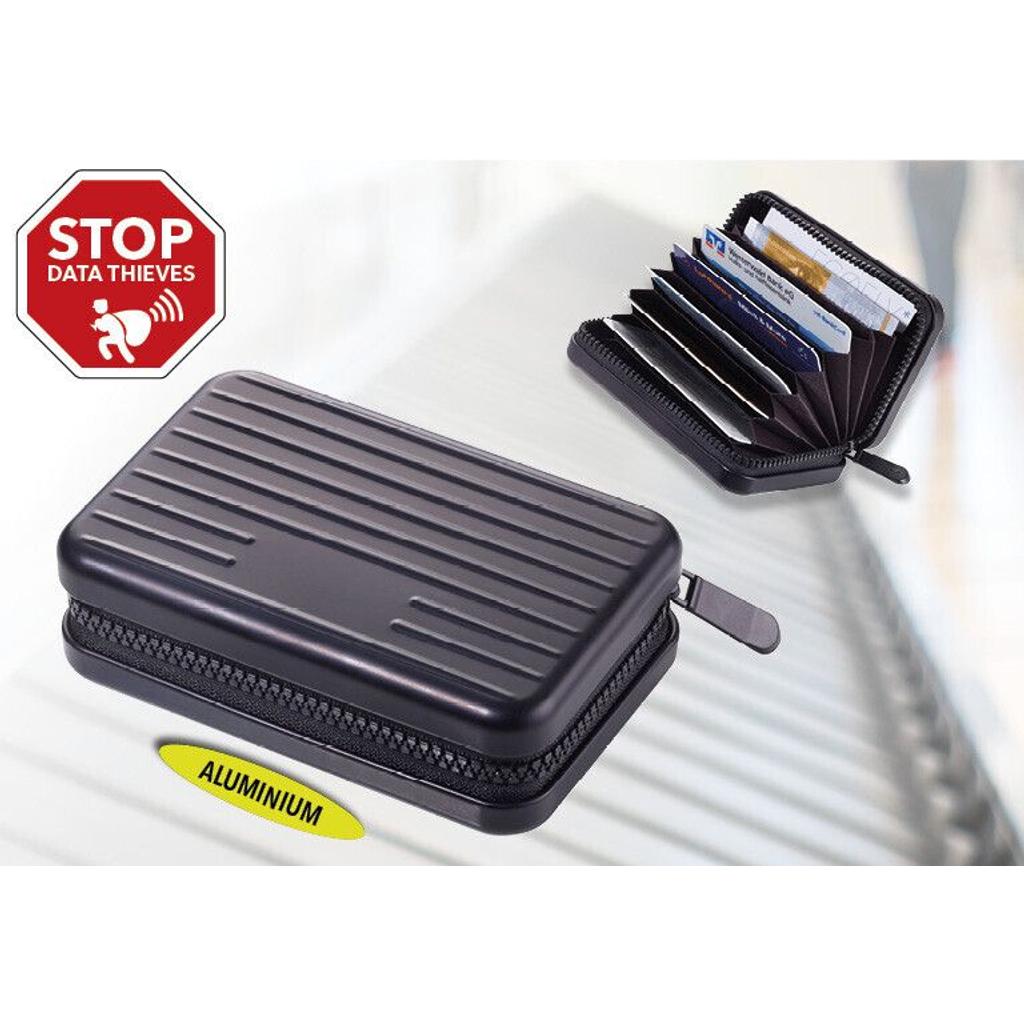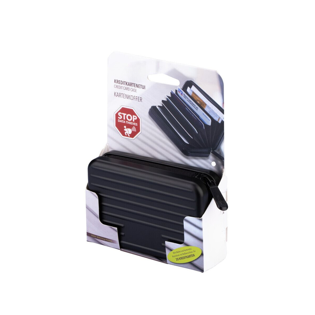 Zahlarten & VersandDas Mini-Wallet und Kartenetui KOFFER vereint Stil und Funktionalität in einem kompakten Design. Aus hochwertigem, matt titanfarbenem Material gefertigt, bietet es Platz für bis zu 20 Karten, Geld und Belege und verfügt über eine RFID-Schutzschicht, die die Daten vor unbefugtem Zugriff schützt. Die clevere Aufteilung und das trendige Profil machen es zum perfekten Begleiter für den Alltag.
