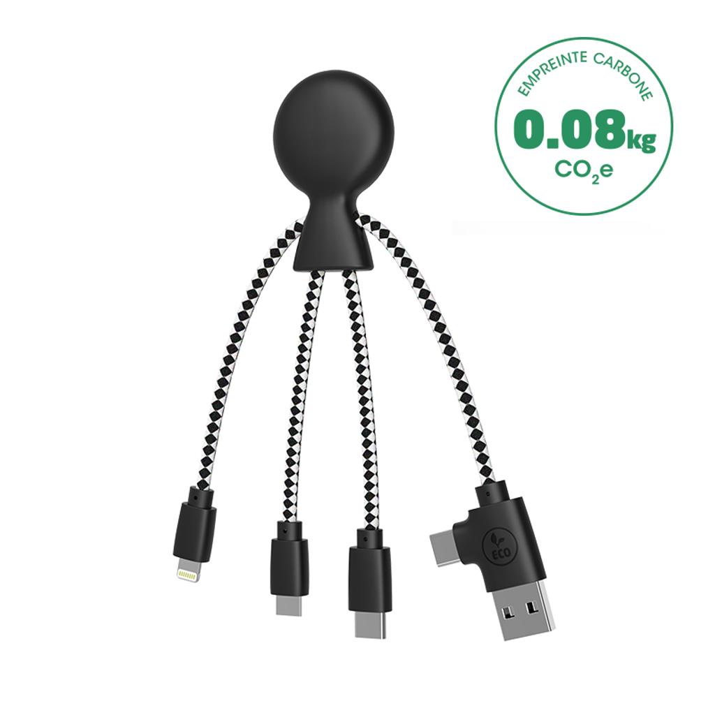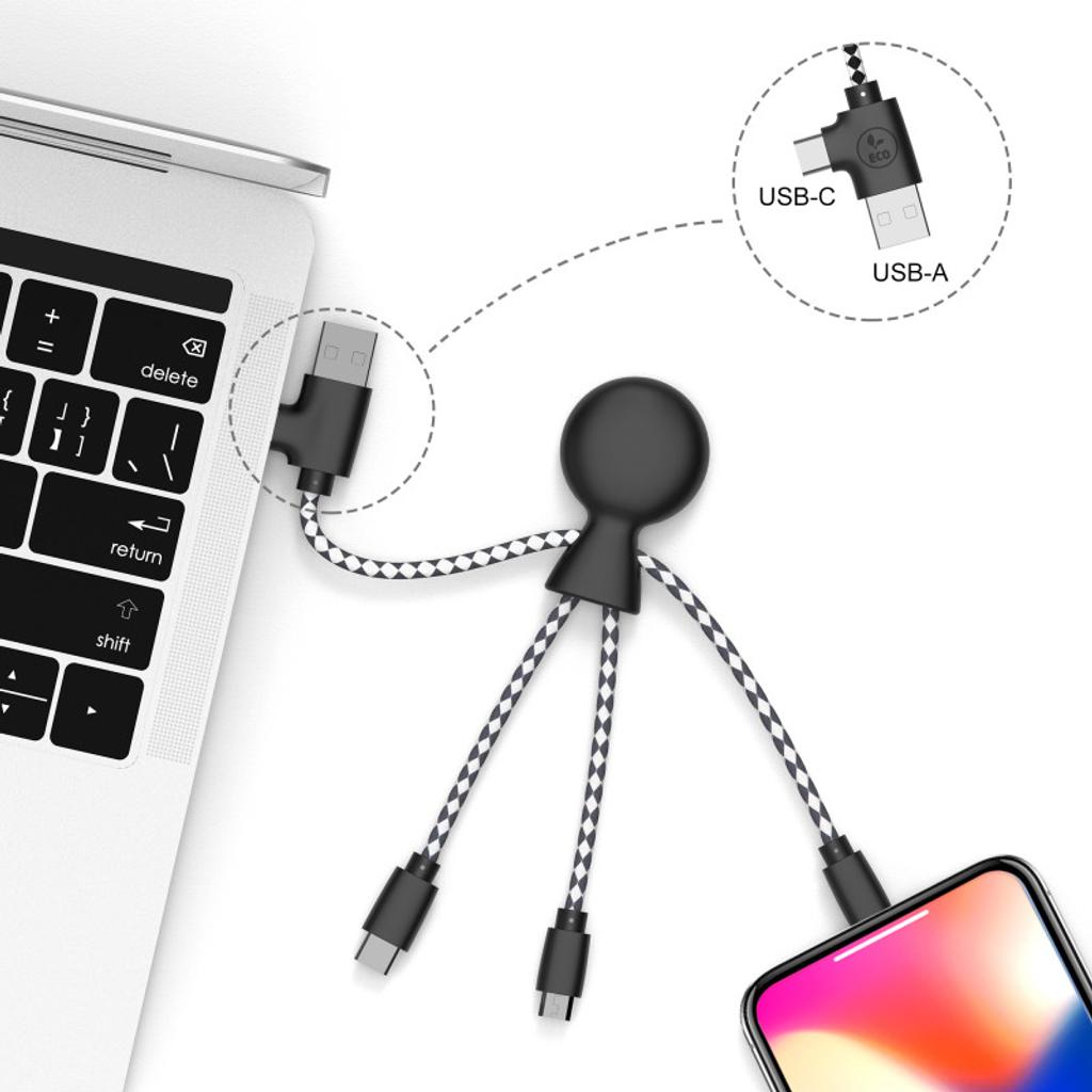 Zahlarten & VersandDas Mr. Bio Ladekabel ist die ideale Lösung für Unternehmen, die innovative und umweltfreundliche Geschenke für Mitarbeiter oder Kunden suchen. Aus GRS-zertifiziertem, recycelten Kunststoff gefertigt und in FSC-zertifiziertem Papierverpackung geliefert, kombiniert dieses multifunktionale Ladekabel Nachhaltigkeit mit praktischer Anwendung. Dank der 4-in-1-Funktion (USB, USB-C, Micro-USB und Lightning) bietet Mr. Bio universelle Kompatibilität und deckt alle gängigen Geräte ab: Handys, Tablets, Powerbanks und mehr.