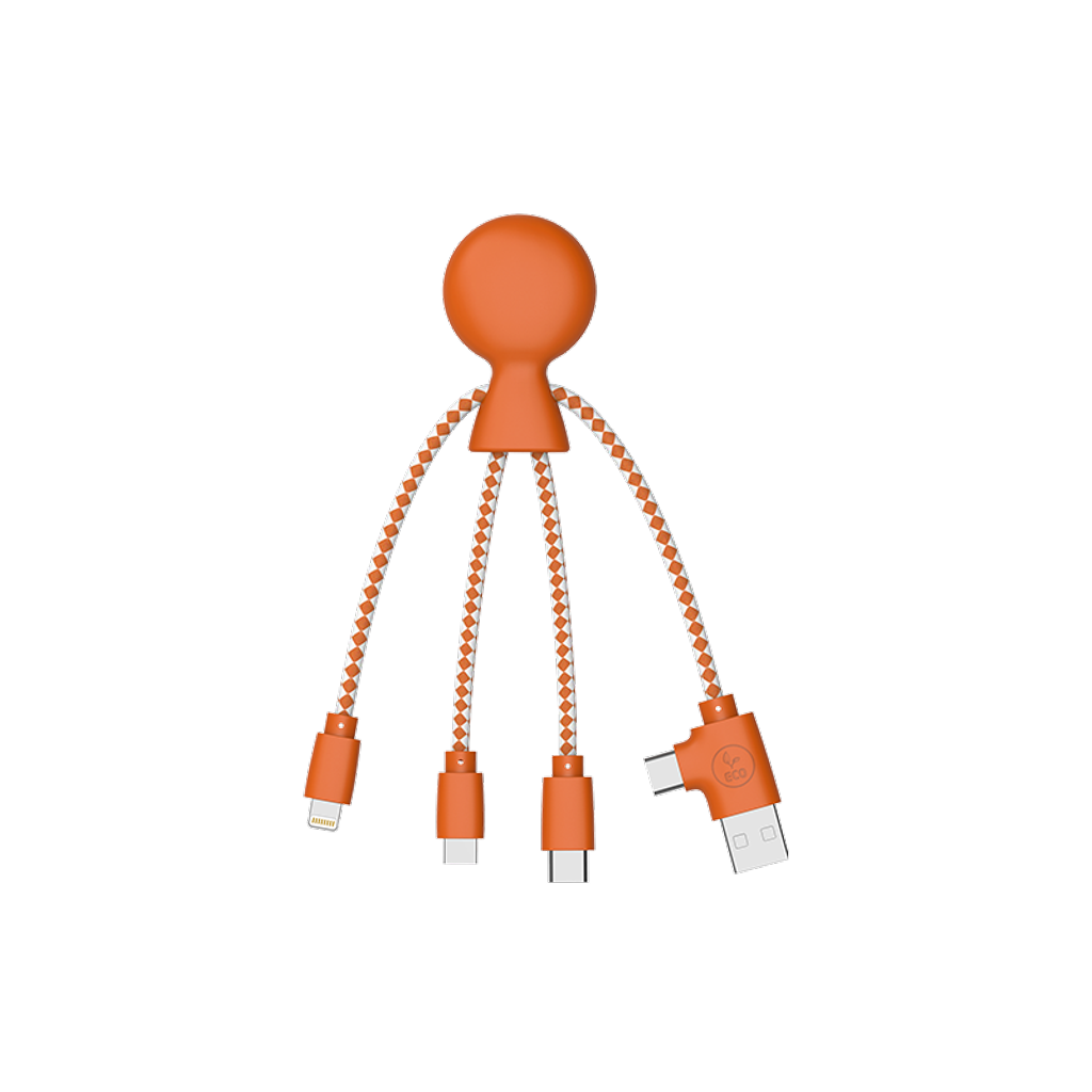 Zahlarten & VersandDas Mr. Bio Ladekabel ist die ideale Lösung für Unternehmen, die innovative und umweltfreundliche Geschenke für Mitarbeiter oder Kunden suchen. Aus GRS-zertifiziertem, recycelten Kunststoff gefertigt und in FSC-zertifiziertem Papierverpackung geliefert, kombiniert dieses multifunktionale Ladekabel Nachhaltigkeit mit praktischer Anwendung. Dank der 4-in-1-Funktion (USB, USB-C, Micro-USB und Lightning) bietet Mr. Bio universelle Kompatibilität und deckt alle gängigen Geräte ab: Handys, Tablets, Powerbanks und mehr.