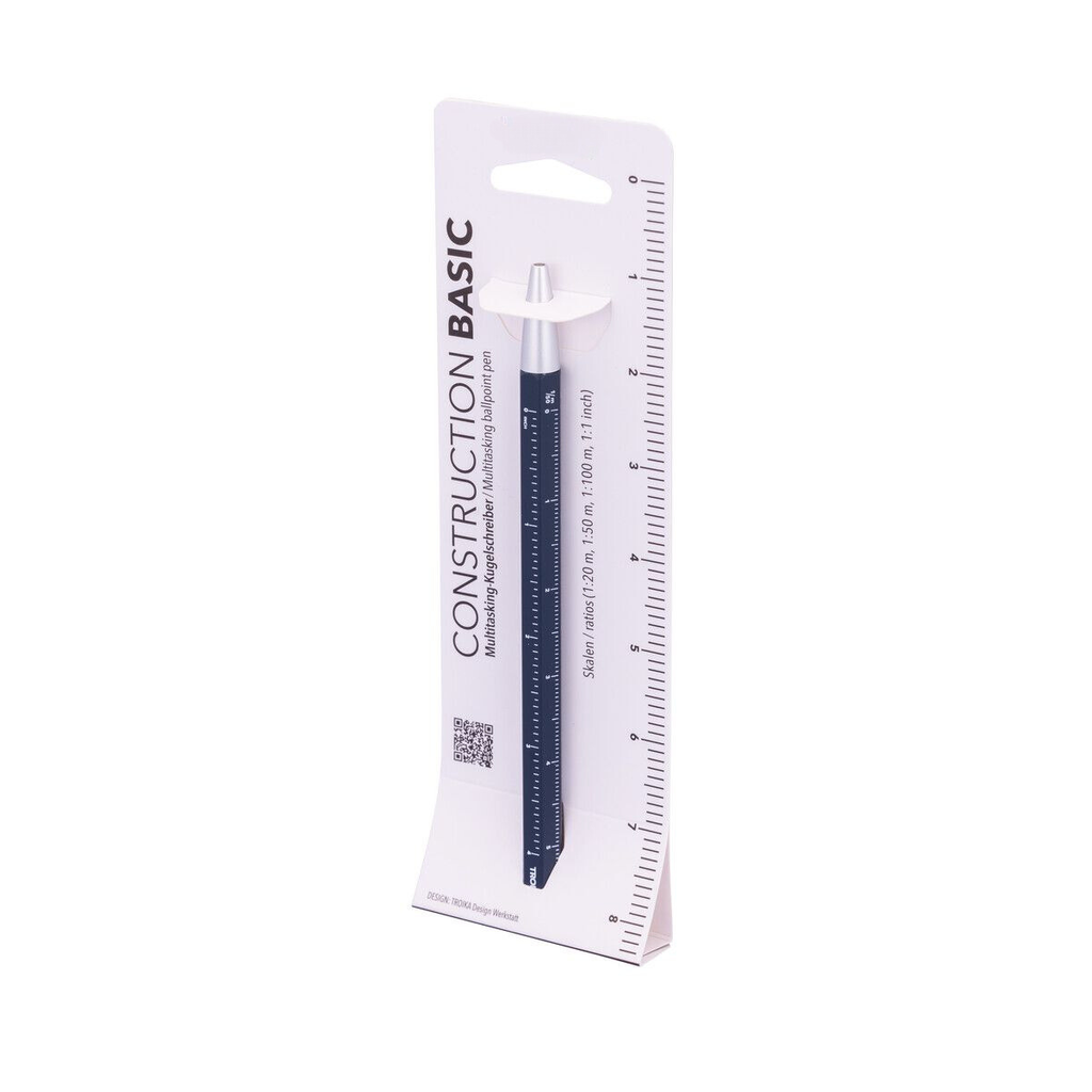 | Details: | Multitasking-Kugelschreiber mit schwarzer D1 Mine, Zentimeter-/Zoll-Lineal, 1:20/1:50 Skala, einfacher Minenwechsel |