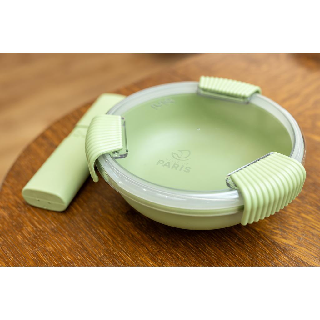 Mit einem Fassungsvermögen von ca. 950 ml bietet sie ausreichend Platz für komplette Mahlzeiten – von Salaten bis zu warmen Gerichten. Dank eines zuverlässigen Clip-Systems mit Dichtung ist sie vollständig auslaufsicher und eignet sich auch für flüssige Speisen.