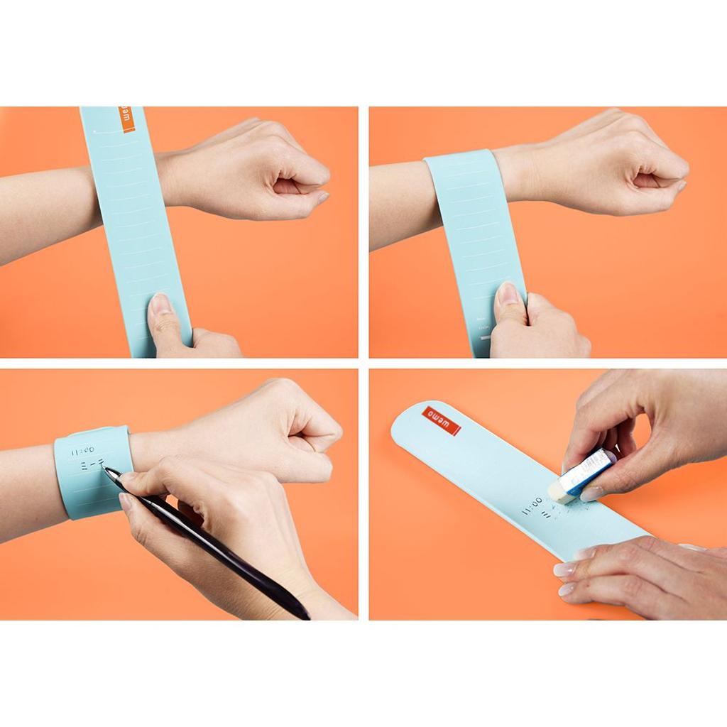 Das Wemo Armband Notizzettel kann um das Handgelenk getragen werden, um wichtige Informationen während der Arbeit oder unterwegs schnell und effektiv zu notieren. Das Armband ist unbegrenzt wiederverwendbar, wasser- und reißfest. Seine Oberflächenbeschichtung ist speziell für das Beschreiben mit einem Kugelschreiber und das anschließende Löschen mit einem Radiergummi konzipiert.