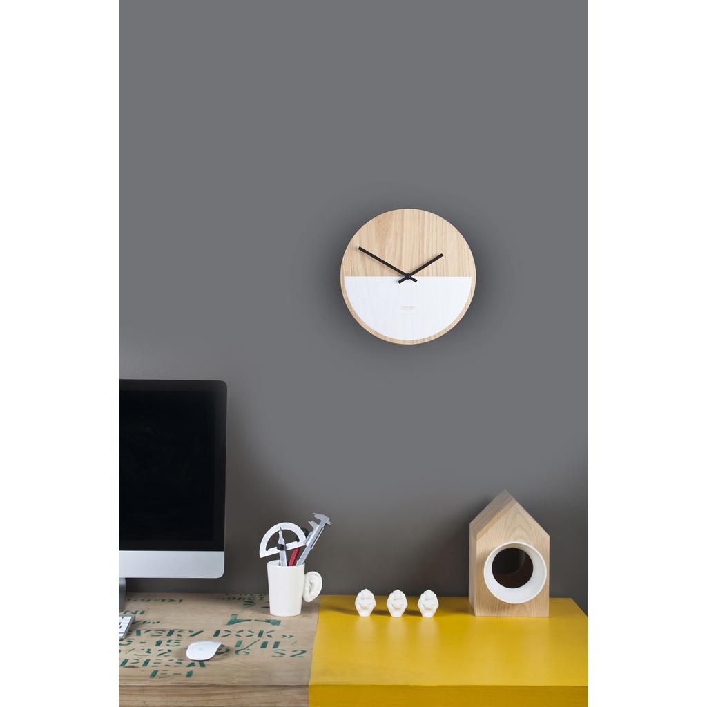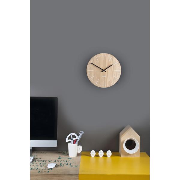 | Material: | Uhrplatte: Eichensperrholz geölt, Zeiger: Metall, Uhrwerk: Quarz |
